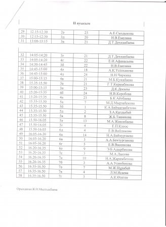 Мектеп асханасына оқушылардың бару кестесі