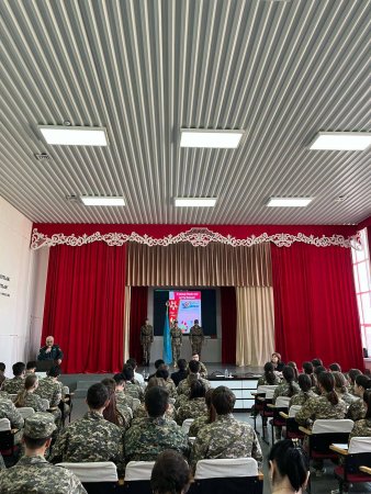 Шараға арнайы шақырылған қонақ – №66-98 әскери бөлімінің рота командирі, тәрбие және әлеуметтік құқықтық жұмысы жөніндегі орынбасары, лейтенант Данабекұлы Еламан мырза оқушылармен ашық сұхбат жүргізді. 10-11 сынып оқушылары көкейлеріндегі сұрақтарын қойып, әскери қызметтің маңыздылығы мен болашағы туралы құнды мәліметтер алды.