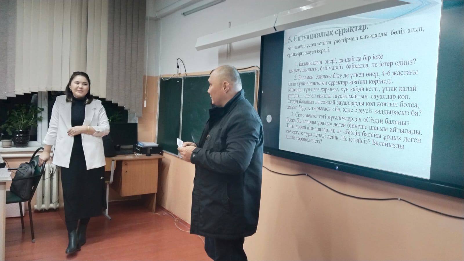 Ораз Жандосов атындағы №30 жалпы орта білім беретін мектебінің 5 «Ә» және 6 «Ә» сынып оқушыларының әкелерінің қатысуымен «Әке – отбасының тірегі» атты тағылымды кездесу-жиналыс ұйымдастырылды.