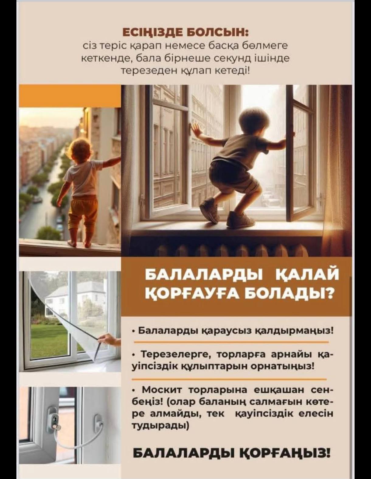 Мақсат – ата-аналар мен балаларға терезе маңындағы қауіптер туралы ақпарат беру, алдын алу шараларын үйрету.